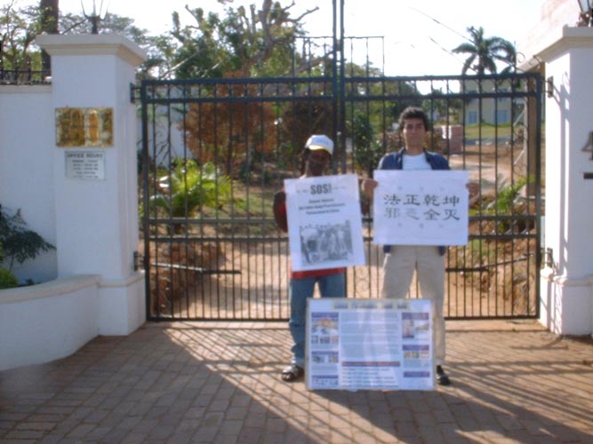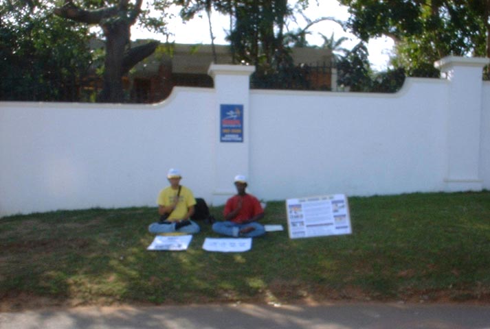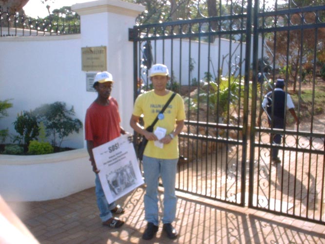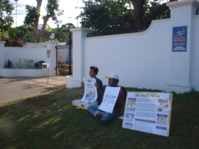 【明慧网2001年8月27日】2001年8月25日下午,我们前往南非渡拜中领馆递交请愿信,向南非居民征集签名,并发了正念。