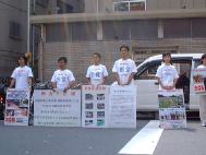 上午,弟子们一起前往领事馆递交绝食声明,由一位日本籍弟子通过门外的麦克风向里面问话,在表明了自己法轮功学员的身份,向对方提出要递交绝食声明后,却遭到了对方的拒绝。我们看到了一个泱泱大国对这样一个平和的团体递交一封声明表现出极大的恐惧。同时,我们也清楚地看到了他们对生命的漠视。