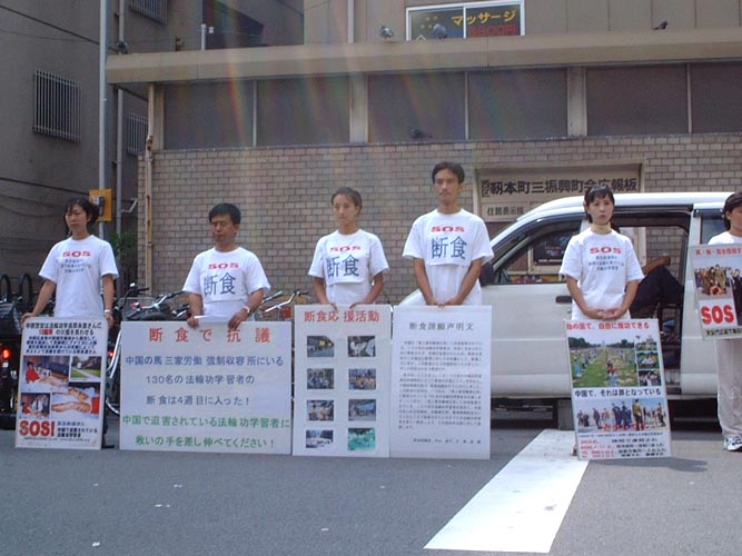 连日来,继东京之后,大阪也展开了声援被关押在马三家劳教所的一百三十位绝食抗议同修的绝食活动。