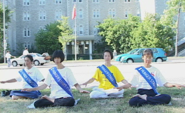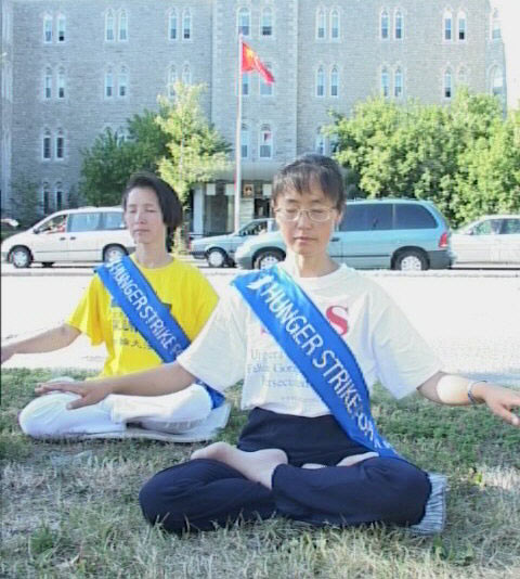 大约2年前,我冒着生命危险去北京上访,呼吁江泽民犯罪集团停止对法轮大法的镇压,被中国警察关押一周后遣返加拿大。今年7月20日到8月4日,我曾经在渥太华中国驻加拿大大使馆门前静坐15天,抗议江泽民犯罪集团对法轮大法弟子的大屠杀。今天,我又来到这里,开始绝食静坐,用生命呼唤正义与良知,呼吁加拿大政府、国际社会和所有善良的人紧急营救为抗议被江泽民犯罪集团非法超期关押而绝食近一个月、生命极度垂危的200多名法轮大法弟子,呼吁江泽民政府中善念尚存的官员起来制止对法轮大法的残酷迫害。