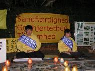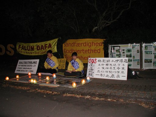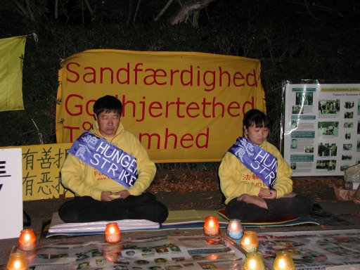 我们丹麦大法学员在结束了另一个洪法、讲清的活动真相后,马上呼应全世界的正法活动,在送出了给丹麦总理,外交部,议会的信,及给媒体的公告,给街头群众的呼吁书后,于二十七日晚上开始了以两位学员绝食为主的又一次请愿活动。
