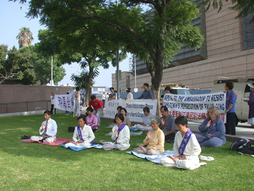虽然是工作日,依然有不少弟子克服困难前来支持这次大法活动。我们深深感到,在正法中,每个大法粒子,无论年长年幼,都是那么的重要。我们几名弟子进到大使出席的听政会,试图向大使递交请愿信。遇到的所有县郡府的警卫对我们都非常友好。当我们说明来意后,警卫都说“我们非常理解你们”或“我们就是来为你们服务的”。很多警卫又把我们介绍给他们的上司们。那些上司们也都很支持我们,所以请愿的布置进行得非常顺利。看来他们对迫害真相都比较了解,让我们深深感到欣慰。那个领头的警卫还主动问我们是不是要递交一封给大使的请愿信。他告诉我们可以申请在听证会上发言,然后当面把信交给大使;若有困难,他们可以替我们转交。大使知道我们的请愿活动,没敢从正门进出,会上也没讲几分钟就匆忙从后门走了。我们来不及当面递信。那位好心警卫就把信交给这几天都会陪着大使的安全工作负责人,并告诉我们他会帮我们转交请愿信。