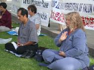 听证会结束前我们利用公众发言的时间上台给郡府的人员讲述了江泽民集团对法轮功的残酷迫害以及中领馆的无理干涉行为,县政委员们表示关切,并感谢我们的发言。