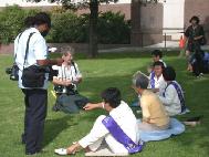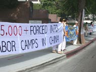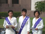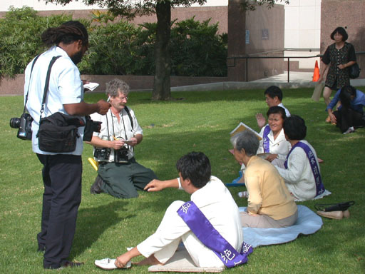 新闻发布会结束后,学员们拉起横幅,步行到大使中午就餐的巴尔的摩大饭店,希望大使能了解到我们的心声。路人纷纷索取大法资料,真是供不应求。