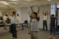 第三天晨炼在垦丁国小,来了六、七位当地新学员,除帮他们调整功法姿势外,也传达「三发正念」的作法与重要性,更在气氛的催化下,大家交流到八点整才依依不舍地分手。早上大夥儿到热门的「水世界」去弘法,起先遭到管理员的阻挠,不准我们在内展示功法,当下我们弟子有人开始发正念,有人善心地向管理员弘法讲清真相,不到五分钟,管理员首肯了,大家即在「水世界」川堂展示功法及发真相资料,好多人穿着泳衣,身上还淌着水站着聆听大法简介与真相资料,真是一个崭新的经验,正法弟子正创造着未来的历史。