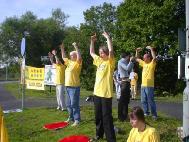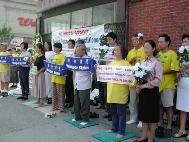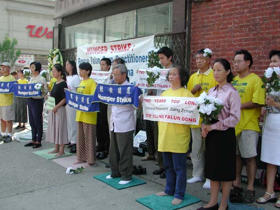 渥太华大法弟子吴安妮(AnnieWu) 为了声援在劳教所中绝食的法轮功学员,营救在内蒙古被警方抓走的法国学员赤坚一家和已被非法关押一年多的爱尔兰学员赵明,两名瑞典西人学员罗那德(Roland)和东尼(Tony)于8月30日上午10点正,在中国驻哥得堡领事馆前带头开始了48小时的接力绝食。 瑞典TT电报新闻社对学员进行了电话采访。电视4台在晚间新闻节目中对此活动进行了报导。 坎培拉的冬夜可真够寒冷的,像是有意考验大法弟子坚定维护大法的决心。弟子卓天尊已绝食进入第3天,依然坚持守夜;弟子罗兆卫上周曾绝食8天,现又寒夜看守;女弟子叶青青也曾绝食8天;65岁的刘芳琴和梁燕,後半夜包着睡袋顶着严寒也露天守卫着。路过的值夜警车曾五次停车,警员下来对他(她)们表示关心、问候和同情,他们被大法弟子的壮举而深深地感动了。 8月30日专程到弟子绝食请愿现场来看望、问候的坎培拉议员特克(Kerry Tucker)女士了解有关情况後及时向外交部、联邦警察局反映并提出交涉。在悉尼的大法弟子也及时地向以上两个部门提出我们的合理、合法的正当要求和应有的权利。 8月31日清晨, 特克议员和3位联邦警察高级官员来到弟子绝食请愿现场,看望并通知弟子:今晚你们可以在此停车,你们也可以到对面(中国大使馆门前)派发真相资料…… 特克议员还专门传达了澳洲外交部的态度。中大使馆向澳外交部提出大法弟子的洪法影响中大使馆的“尊严”。外交部的答覆是:澳洲法律允许我们的公民这样作。外交部并对我们表示同情和支持。 特克议员还热情地告诉弟子,如再遇到什麽困难,有什麽情况可及时与她联系,她会专门反映和协助解决。 大法弟子走出来正法,唤醒世人的良知、讲清真相的行动,强烈地震慑着另外空间的邪恶。悉尼大法弟子来到坎培拉驻澳大使馆对面“安营扎寨”,十多天来分批绝食请愿,浩然正气,使江泽民邪恶集团爪牙坐卧不安,进而鬼鬼祟祟搞起小动作来,妄想遏止我们的洪法活动,致使8月30日有警员通知弟子“不得到对面(中国驻澳大使馆门前)派发真相资料、不得过马路中间展示展牌、不得在洪法区内停车……” 由此,大法弟子们看到,邪恶之徒虽貌似凶恶,但在大法弟子们的正信正念面前,在善的力量面前,根本不堪一击,显示出的只有脆弱和内心的惧怕。 弟子们为了捍卫洪法阵地、保护大法横幅不被邪恶之徒破坏,分三班彻夜露天守卫,以无私的付出向世人证实大陆弟子所遭受的迫害,唤醒有良知的人们的支持。在我们表示感谢的同时,也由衷地为觉醒的世人而感到喜悦! 8月31日,在中国驻悉尼领馆前的静坐绝食已进入了第9天,绝食请愿也改为接力进行。 从绝食静坐开始,学员们就感到正与邪的较量是相当的激烈。开始是中国驻悉尼领馆人员看到我们挂白灯笼和白花,感到胆颤心惊、千方百计地加以阻挠,在向警察要求我们撤掉灯笼和白花的无理要求遭到拒绝後,更是气急败坏地动手将白花扯下来,企图掩盖江泽民政府迫害中国大陆法轮功学员的真相。大使馆一系列无理的行为,完全失去了泱泱大国使者应有的风范。 接下来的几天,悉尼一直是蒙蒙细雨不断,可想而知在这样寒冷的冬天再加上冰冷的雨水,对绝食的弟子更是一个严峻的考验。60岁的老弟子杨阿姨坐在地上更是被雨淋透了;弟子小张从第一天绝食起雨就没有停过。她说一天下来,在雨中坐着,虽然有雨衣,也弄得裤子都湿了,到了晚上更是感到寒冷和饥饿。可是她马上修正自己的观念:不能带有人的观念在做这麽神圣的事。国内弟子为了去天安门证实大法,风餐露宿,面对的是围追堵截和随时被送到牢狱受虐待和失去生命的危险,而我只是去承受饥饿和寒冷,连这一点都做不到吗?想到这就再也没有饥饿的感觉了。三天下来,感到状态比第一天还好。她说:“我今天在这里绝食静坐,有这麽多的人和不计其数的车辆经过,当他们看到我们,看到这些横幅,即使只有一个泯灭的良知被唤醒,也是值得的!” 8月30日开始绝食的小米是两个年幼孩子的妈妈。当她想到国内在绝食中的弟子和在牢狱中被折磨的弟子,不知有多少美好家庭被拆散,不知有多少孩子失去他们的妈妈,她心如刀割,趁公司淡季,请了假来此呼吁。在接受当地报社的电话采访时,她表示:“我并不是想用绝食来了却生命,相反,学了法轮大法,我更加珍惜自己及他人的生命,只是希望通过自己身体的承受来呼吁澳洲政府更加关注在中国发生的对法轮功学员的残酷迫害的事实,也希望能让更多的善良的人们给予我们理解和支持。”在与记者的谈话中,她感到对方已被她的话所打动。小米所居住地区的另一家地方报纸,也希望我们能把在中国驻悉尼领馆前绝食静坐的照片寄给他们,以便他们报导。 8月30日(星期五)上午,美中地区法轮功学员在芝加哥中国驻美大使馆前开始九天接力绝食,声援马三家劳教所130位绝食已四个星期的法轮功学员,强烈抗议江泽民政府逾期关押、草菅人命、执法犯法的无赖行径,严正要求江泽民政府立即无条件释放所有关押在马三家的法轮功学员,同时呼吁国际社会和一切善良的人们给予紧急援助,制止江泽民政府对法轮功的血腥镇压。 首先,众弟子和参加绝食的弟子们一起发正念,随即召开新闻发布会。大赦国际的代表发表了讲话,而后学员宣读了何海鹰先生在伊利诺州以反人类罪控告中共四川省委书记周永康迫