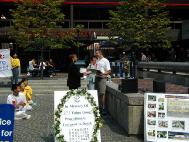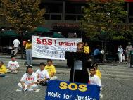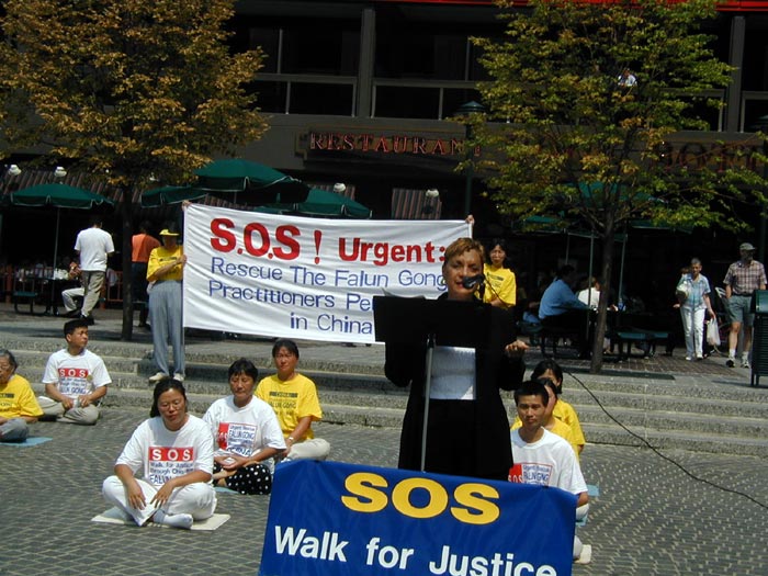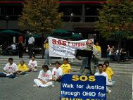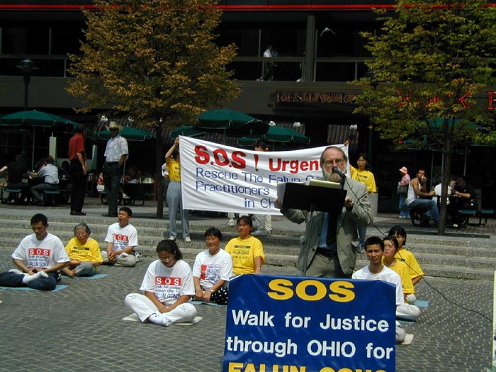 为表达对遭受迫害的中国法轮功学员的支持以及参加“SOS!环球步行”的学员的敬意,辛辛那提市市长查理. 卢垦宣布2001年8月29日为"法轮大法修炼者日",副市长密尼特.库泊亲临会场代表市政府宣读了嘉奖书 。她为当地政府,国会议员及人们对法轮功和平运动的支持感到骄傲。