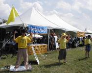 法轮功深得美国人民的喜爱在此次活动中可见一斑。我们多次登台演示功法,每次观众都是挤得满满的。在表演的全过程,一位黑人功友热情地介绍着法轮功。他反复强调着“真、善,忍”。活动中,有许多黑人主动为营救滕春燕女士签名表示支持法轮功。在嘈杂的各种音乐声中,许多人停下脚步,为祥和安静的炼功人拍照。