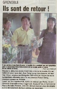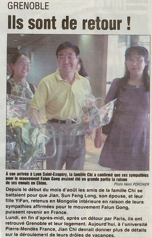 【明慧网2001年9月12日】法国DauphineLIBERE报9月11日报道 - 抵达里昂圣埃居贝理(Lyon-Saint-Exupery)机场后,赤坚一家证实:同情法轮功运动是他们在中国的麻烦的主要原因。 (摄影:Henri PORCHIER)
