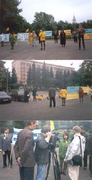 俄罗斯大法学员中使馆前抗议中国迫害法轮功