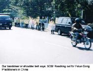 我们的横幅写着“SOS请援助在中国的法轮功学员”
