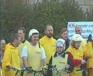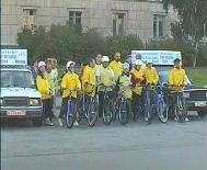 参加此次车旅的14名大法弟子,包括12岁的少年和64岁的老人,大家都穿着赶制出来的印有SOS等字样的黄色外衣, 再加上汽车上的宣传板, 标语等, 显得十分醒目。昨天学员们举行了记者招待会。为声援在中国受尽虐待的无辜的中国同修,车队的弟子们将克服路途的艰难,向途经的城市和农村的居民讲清真相和发放法轮功资料,还计划同记者和地方政府官员会见。
