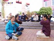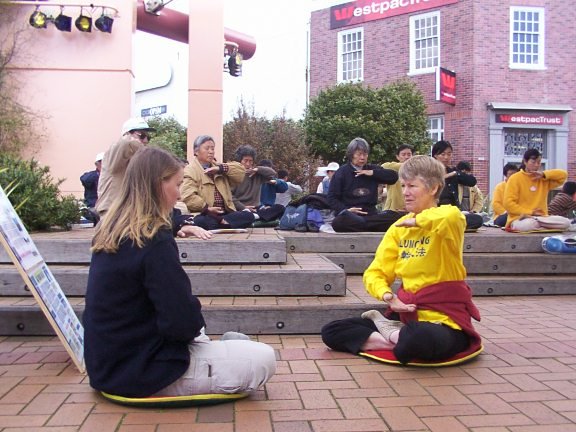 【明慧网2001年9月28日】九月二十二日(星期六)是新西兰学校假日(为期二周)的第一个周末,来自奥克兰(Auckland)及汉米尔顿(Hamilton)的学员齐聚在北岛的渡假城市罗陀如阿(Rotorua)的市中心(City Focus),向来自新西兰各地及外国的观光游客洪法、讲清真象及征签。当场就有来自美国的观光客及新西兰瓦卡他泥(Whakatane)的游客,向大法弟子学习五套功法。中午一点洪法活动结束后,另有部份奥克兰学员续往南下加入“SOS全球步行:奥克兰到威灵顿” 新西兰步行小组的活动。