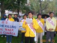 学员:为了向世人讲清真相。我们用这样一种徒步的形式,去告诉世人,中国大陆是多么的黑暗,充斥着血腥和欺骗,而全世界善良的人们正在看清这一点,越来越多的人们起来支持法轮功。我们愿意把“真善忍”的声音传递给他们。
