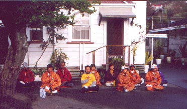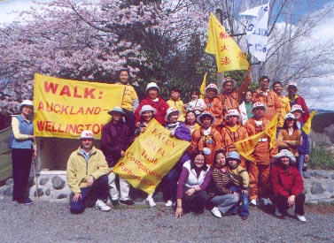 10点左右,我们奥克兰去拉脱华(Rotorua)洪法的面包车赶来参加我们步行。我们的队伍又新加入了9位功友,现在我们已有二十多人,老老少少,一路浩浩荡荡,横幅飘扬。