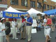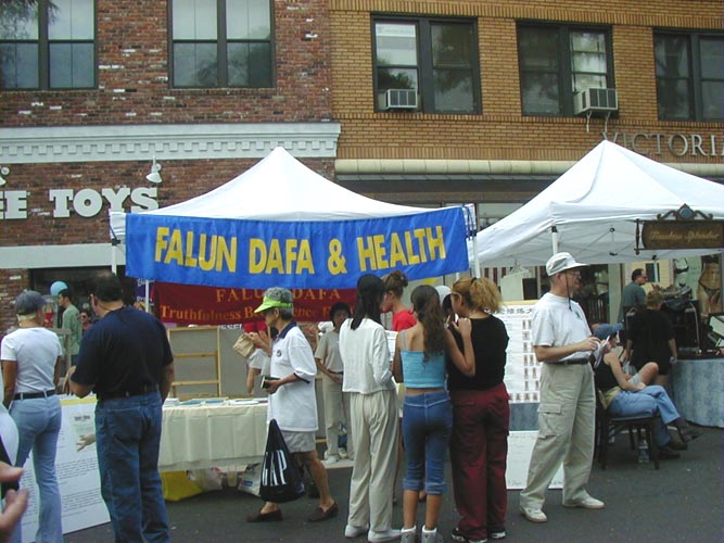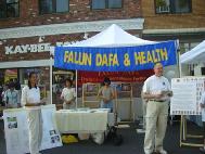 当地青年会(YMCA)主管的助理恰巧路过我们的展位,欢喜至极地告诉学员,因为她最近事务繁多,将我们到青年会的免费教功申请给耽误了,但是她会尽快处理,让社区民众能早日学习法轮功。