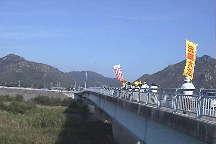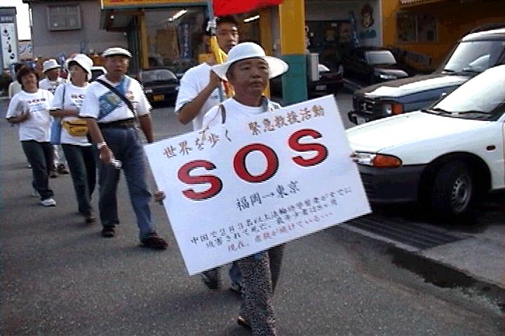 9月25日是日本南线SOS紧急救援步行小分队进入第十天,大家仍精神抖擞,不觉疲劳,只是有些学员脚上磨出了水泡,因疼痛行走有些困难,但大家都咬紧牙关忍着脚底的剧痛,坚持步行。有些五、六十岁的老年学员一直跟着队伍走,为了赶时间,今天计划要走二十四、五公里,而且走得快,年轻学员都担心年纪大的学员们吃不消,劝他们坐车。一位一直跟着步行的六十五岁的学员(也是小分队中年龄最大的学员)信心十足地说∶没关系,我们能跟得上,现在我们感觉越走越轻快,像要飞一样,你们年轻人不一定走得过我们。于是大家便加快脚步向目的地前进。
