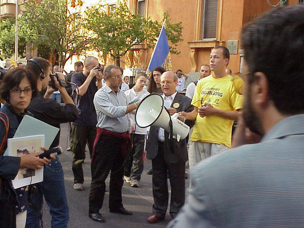 | 中国大使馆前 | 欧洲议会议员Marco Panella先生和学员在大使馆前 | 宣读给中国大使的公开信 |