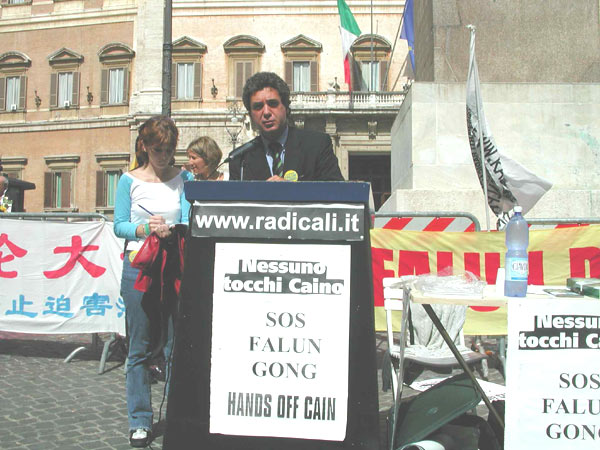 12:30分,记者招待会在议会广场召开,前欧盟委员会主席,现任欧盟议员埃玛女士,意大利议会副议长比昂迪,议会外交委员会主席古斯塔夫,参议员达米克,议会永久委员会(司法部)代表和NTC协会主席纷纷发言,赞扬法轮功修炼者的祥和和宁静,称“真善忍”是人类共同的价值,表示支持法轮功学员的合法权利,并敦促中国政府停止迫害法轮功。法轮功代表也介绍了当前江氏集团利用恐怖主义政策加剧迫害大法弟子的情况。两位在大陆受到迫害的艺术家介绍了他们的经历。特别值得一提的是,副议长本来在议会中主持会议不能参加发布会,他给发布会写来了他要发布的信息,已由主持人代为宣布。但他还是在最后一刻,本人及时赶到并作了精彩演讲。