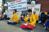 在中领馆前,学员们以静坐绝食方式在承受着,但也正是如此,让世人更多地知道了中国的法轮功学员更大的承受及遭受的迫害,唤醒着世人的良知。