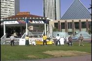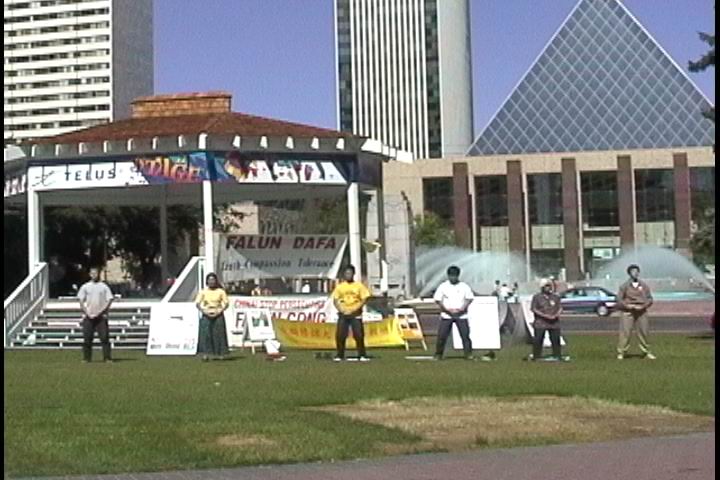 埃德蒙顿市政厅丘吉尔广场的露台上布满了横幅和展板。一个电视台拍下了壮观的场面。许多善良的埃德蒙顿人在请愿书上签了名,并表达了他们的正念。一名真诚的基督教徒把他的头放到地上为我们祈祷,愿镇压尽快结束。感谢埃德蒙顿的修炼者们在这一天提供的所有支持和帮助。汤姆在埃德蒙顿为我们提供了食宿,并不辞辛苦地做着翻译工作,不久他将去波兰,把大法传到一个新的国家!祝汤姆好运,并献上我们最好的祝愿。