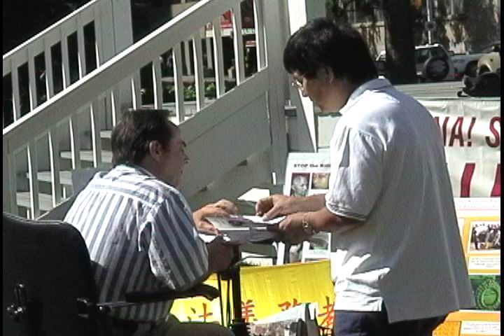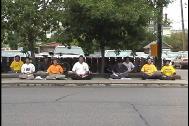 下午,我们到中国领事馆发正念。过一会,我们再发正念,清除控制那些做坏事的人的邪恶因素。