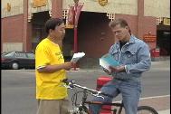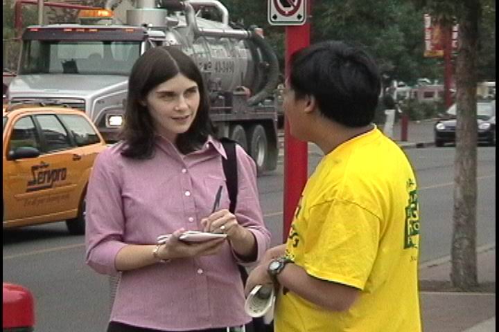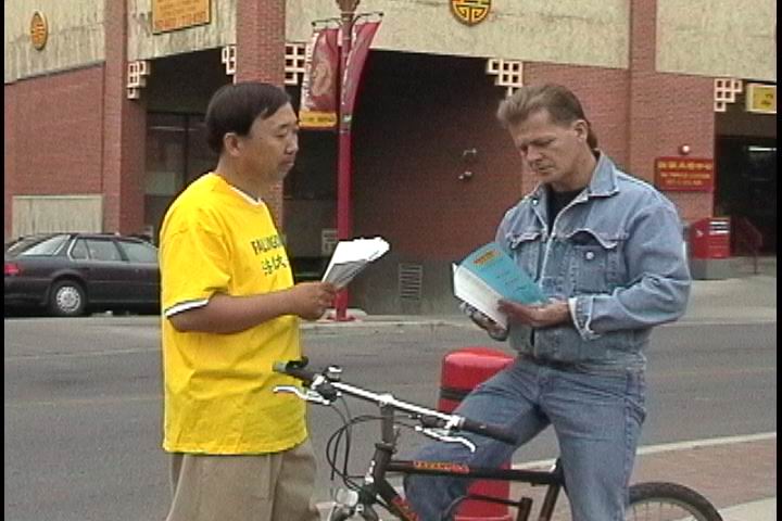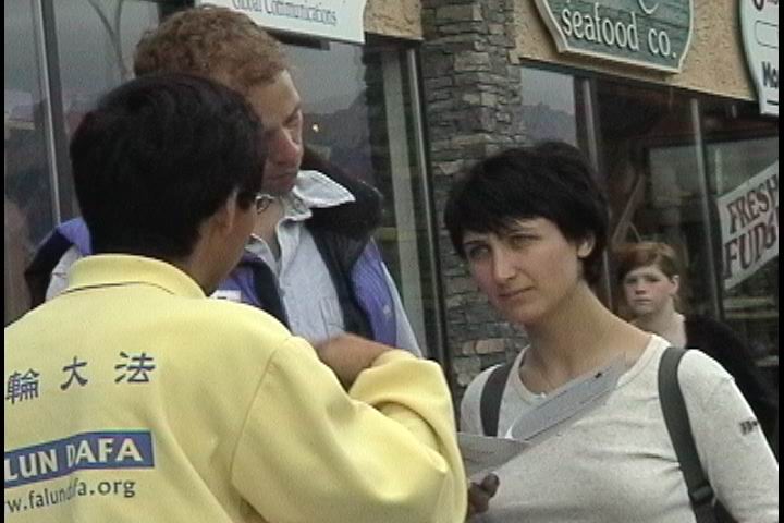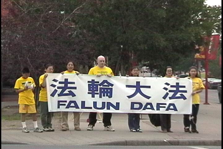 当我们到达卡尔加里时,中国城的四个街角站满了穿黄恤衫的人,还有两面大横幅。那是卡尔加里学员隆重的欢迎。大报的记者正等着和我们交谈。还有一家中文日报高兴地给我们小组拍照。这天,修炼者感受到一种被接受程度上的突破。中国人比从前更愿意接受传单。一家主要的新闻电视台为晚间报导摄了像,我们送给他们讲清真相的录像带和资料。新闻主播告诉我们他会看讲清真相的录像带,并阅读所有的资料,他还会确保他的工作人员也通读全部资料,以便下次采访前他们对情况有更深的了解。他自愿做这项非常有意义的工作。这真是我们最大的希望之一:媒体逐渐对我们有了足够的了解,他们就能抵制(江XX犯罪集团的)宣传,从而以更高的道德良知做出行动。法在我们的整个旅程中创造着奇迹。