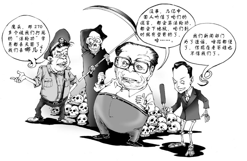 漫画:1、江泽民的美梦破灭;2、人权恶棍