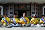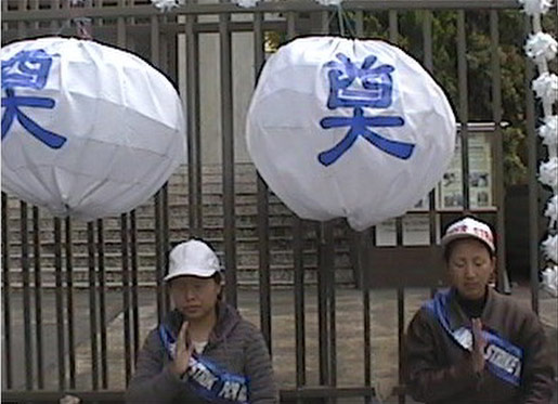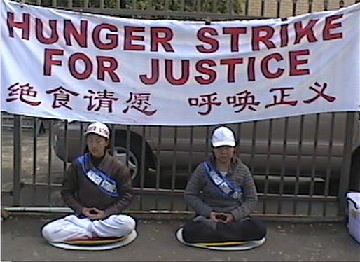 为抗议中国大陆对法轮功的残酷迫害,特别是近期马三家劳教所非法超期关押130名无辜的法轮功学员,华盛顿DC中国使馆前的绝食仍在继续。