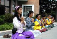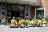 | 部份绝食弟子在中国大使馆门前发正念 | 部份绝食弟子和支持者发正念铲除邪恶 | 部份绝食弟子和支持者在中国大使馆门前发正念 |