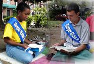 为了挽救世人,国内、海外弟子都在痛苦地承受着,令天地动容、令世人觉醒。一位西人老妪含着眼泪看完了血淋淋的图片展版说,她要给政府写信,要求制止这种暴行;一位西人冒雨送来一封他的支持签名信。学员们为他的正义行为所感动,而他却说:他是被大法弟子的精神所感动,维护基本人权,抗议暴政是每一个善良人应该做的;有一家住领馆附近的印度人,一天晚上特意送来了一个大比萨饼,执意要留给未绝食的学员,且还留下他的地址,让学员到他家休息。第二天他又领来几个旅游的朋友,特意来此签名;每天领馆前的交通要道上都有无数的鸣笛声向学员致意;有人送来鲜花;有人要给捐款。执勤的警察也表示同情,有的还表示要学功。冒雨采访的记者说:他们钦佩学员们这种坚定维护自己信仰的毅力……在大法无边威力的感召下,在学员们全面揭露邪恶慈悲救度世人的“助师世间行”中,越来越多的人开始了解真相,良知觉醒,为此学员们由衷地感到欣慰。