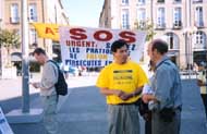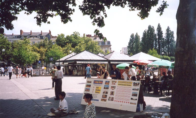 在大城市Nantes(南特),市政府的官员不仅认真地听我们讲述在中国所发生的一切、记下了我们的愿望和要求,还热情地给我们介绍了全市最便宜的复印店。OceanPresse(<<大西洋新闻报>>)报社的一名年轻记者听到我们想找一处热闹的地方洪法、炼功,亲自带我们来到市中心的商业广场,并在第二天对我们的活动进行了采访,临走时握着我们的手说:“你们能这样做非常好!”