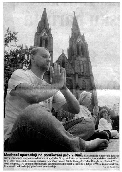 由于又有几位学员加入(两位当地学员--一位中国学员,一位捷克学员;和两位驾车好几百英里从德国赶来的德国学员),这使我们中的三位学员得以分身,在两天的时间里主要负责与媒体交谈。媒体的态度非常嘉许,正面报导我们,详细地了解了法轮功,尊敬地采访我们,提一些有深度的问题。至少有九家全国发行的报纸发表文章报导我们的“SOS!紧急救援之旅”和法轮功,并刊登了图片。数家广播电台以捷克文和英文采访了我们。两家独立电视公司拍摄了我们。媒体的反应让我们所有的人都惊奇。一些前来观看我们演示功法的人告诉我们,广播节目整晚都在讲我们。