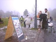 在城堡树林公园的路边,一个写有“343人被迫害致死,这场邪恶必须停止“的横幅和一排长长的烛光吸引了大量的过路人。他们有的仔细地观看展板,有的立即止步阅读刚接过来的有关近期被迫害致死学员情况的传单,有的与学员交谈了解更多情况,还有的主动在我们的呼吁书上签字。