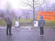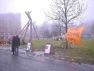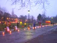 【明慧网2002年1月13日】1月12日(周六)哥德堡的大法弟子在市中心城堡树林公园和中国领馆前举行了一系列的烛光悼念活动,揭露中国江集团政府迫害大法弟子的邪恶行为。