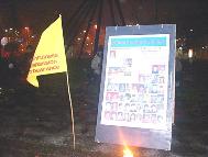 11日晚上6点正,学员代表宣读了法轮功学员全球连续二日悼念行动及强烈谴责江泽民邪恶集团肆意杀害无辜的法轮功学员的声明。全体大法弟子三发正念清除着破坏大法的一切邪恶,场面威严。