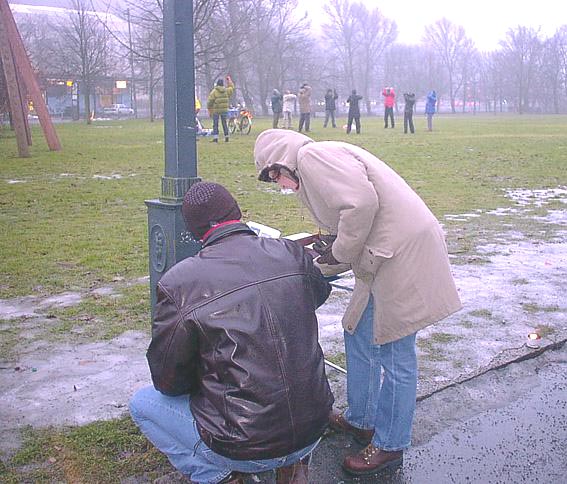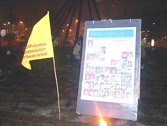 尽管时间紧并且来不及得到警方的许可,但大法弟子们积极想办法,加强自己的正念,我们终于在与警方多次联系后,破例地得到了在中领馆前举行烛光悼念活动的口头许可。