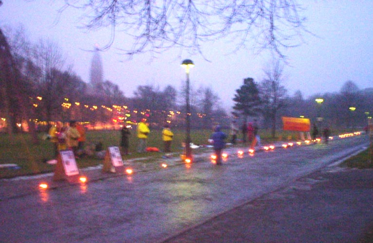 “爸爸,他们在干什么?”“他们在烛光守夜,又有更多的法轮功学员在中国被杀了。”“为什么?”“因为中国不是民主国家……”