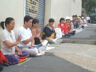 纽约数百大法弟子中领馆前发正念,连续三天抗议屠杀