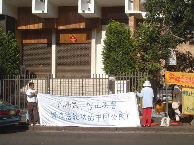 图片报道:悉尼大法弟子中领馆前抗议屠杀