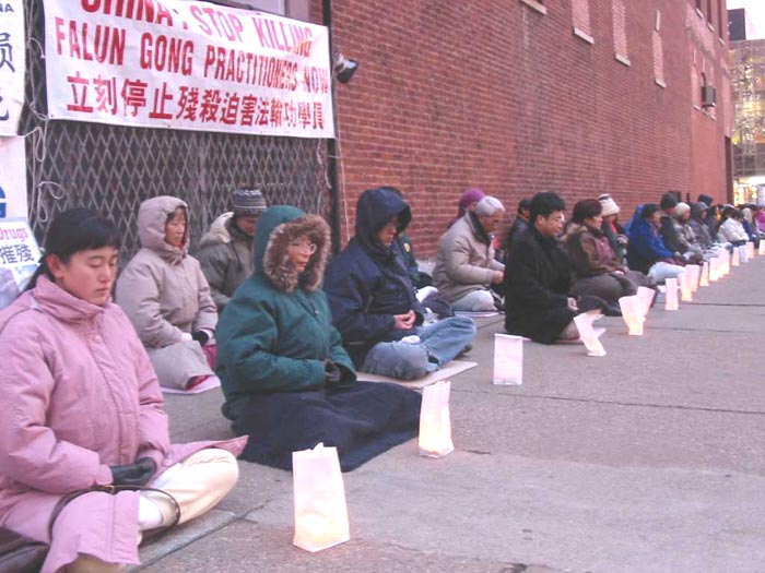 随后,大家和全世界大法弟子同步发正念,用自己纯净而坚定的正念清除迫害大法的一切邪恶。在夜色来临时,一盏盏烛光灯点燃,悼念为坚持“真善忍”信仰、为正法而献出生命的大法弟子们。