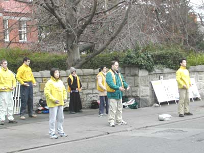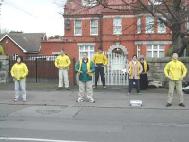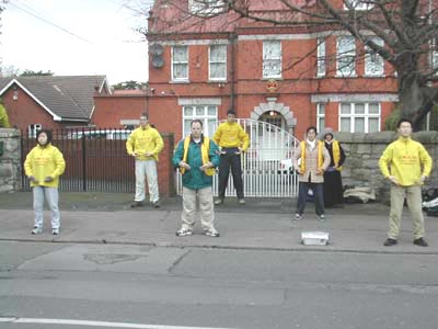 我们再一次以和平、理性的行动,真诚、善良的声音呼吁中国政府停止迫害,释放无辜;再一次呼吁包括驻爱尔兰大使馆在内的所有中国驻外大使馆,希望你们理智、清醒地对待江泽民流氓集团残酷迫害法轮功学员一事;正确、公正地对待海外法轮功学员,不要再紧随江泽民流氓集团之后昧着良心干天理不容的事,从而使你们自己的生命堕入万劫不复的可怕境地!