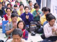 【明慧网2002年1月14日】60多名香港法轮功学员1月12日下午3时至6时在中联办外召开新闻发布会及举行悼念静坐,强烈谴责江泽民集团对法轮功不断升级的恐怖和虐杀。江集团在垂死的疯狂中,新年前后下令将镇压升级,致使在去年12月至今的不到一个月内,最少有二十名法轮功学员被迫害死亡,揭露出来的数目很可能只是冰山一角。香港学员与世界各地学员先后几天的静坐悼念活动,同时警告着那些行凶作恶的人、规劝着协助这场迫害的人:世界在注视着!立即停止作恶!停止协助对人性的犯罪!善恶有报,所有人都将为其迫害人性的罪行负责。