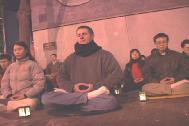【明慧网2002年1月15日】1月11日晚于纽约中领馆前烛光守夜,悼念死难同修,其时,多云、阴、大风。