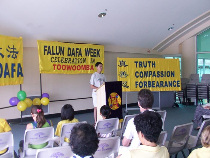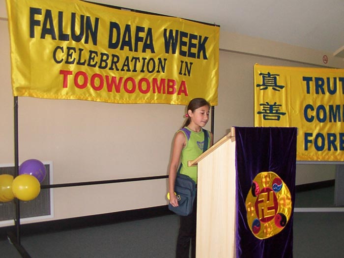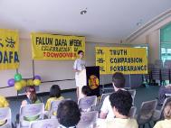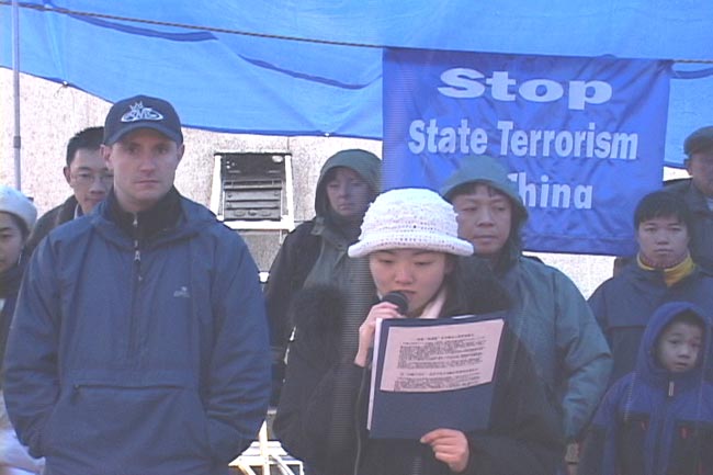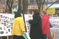 多伦多学员杰森.劳夫塔斯(Jason Loftus)说,“仅仅在中国就有1亿人修炼法轮功”。他说,由于中国高层官员对该功法的普及感到担心,于是开始镇压信仰自由。“许多人被折磨致死,或被投入劳教所。我们想要告诉人们,我们反对这种迫害。”在最近几(一)个月里,据报导有20名法轮功学员死亡,死因可疑。一场电话营救活动已经使至少一名女孩从中国劳教所中被解救出来。