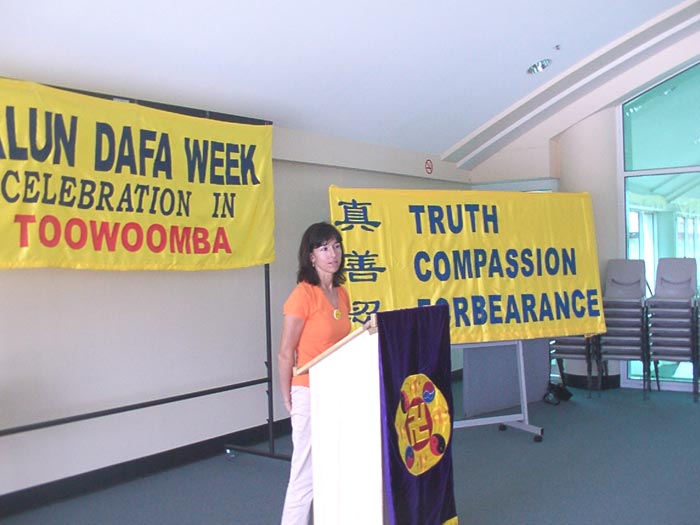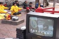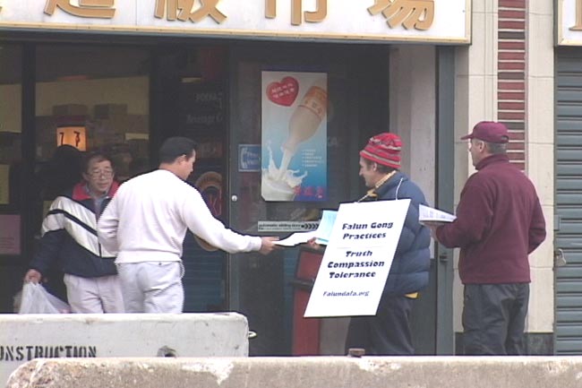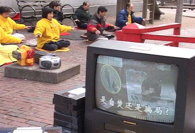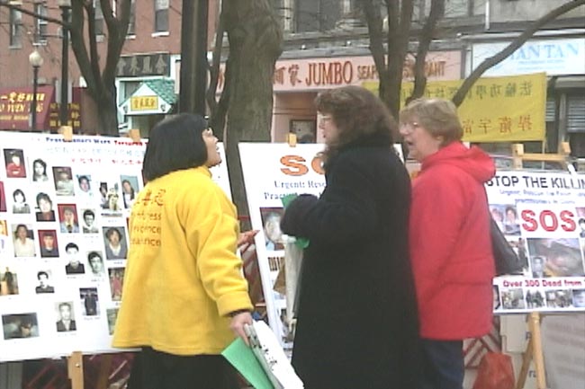 “我们要让世界人民知道事情的真相。中国政府将会告诉你一整套关于法轮功的毫无事实根据的谎言,而我们的功法则以真善忍为原则。”