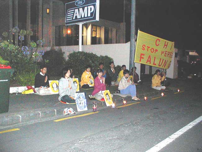 此时,新西兰,大法弟子于一月十三日在中使馆门前以烛光守夜的形式,和平理性地,以大法弟子的慈悲向世人揭露江泽民流氓集团滔天的罪恶。 并以纯善之心,连续齐发正念,坚定地清除另外空间迫害大法的一切邪恶,无所不包,无所遗漏。