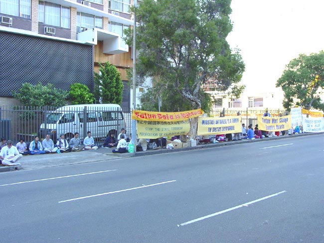 发布会后,大法弟子再发正念除恶。并于下午5点至晚9点,在中总领馆前为344名死难的同修举行烛光悼念。200多名悉尼大法弟子於每个正点齐发正念除恶、炼功。强大的正念之场,有力地震慑、灭尽着邪恶!