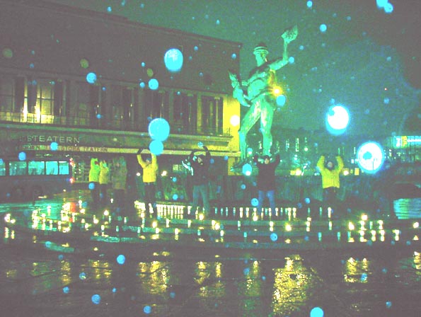 英国中西部地区大法弟子在曼城烛光悼念死难同修(图)