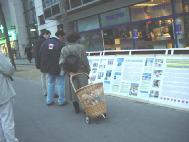 学员们特地选择了离教育处有一段距离、能避开其监视器的地方,以便于留学生们接受洪法资料。同时,这个地方也是留学生从地铁去教育处的必经之路;还是个十字路口,来往行人川流不息,真是洪法的绝佳地点。
